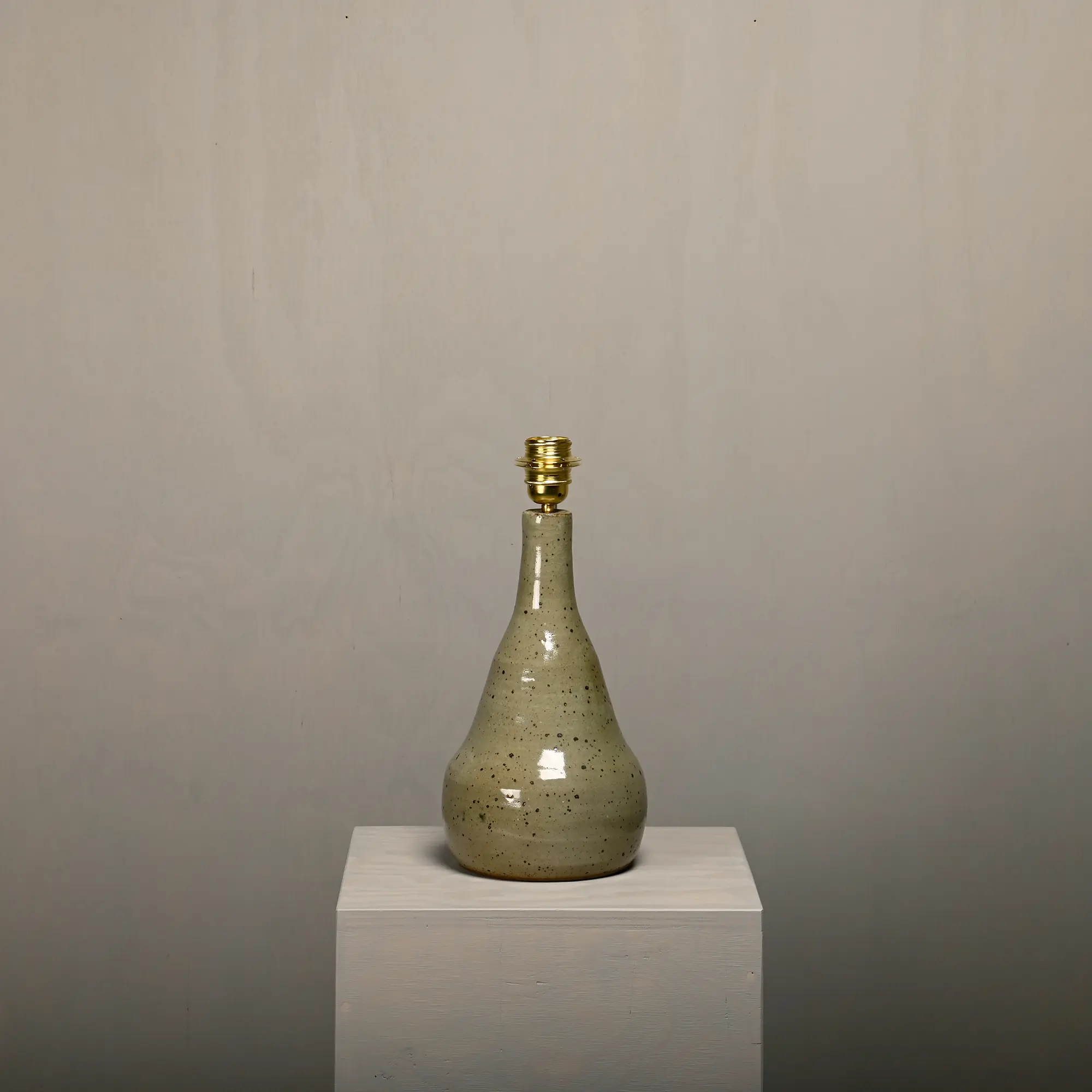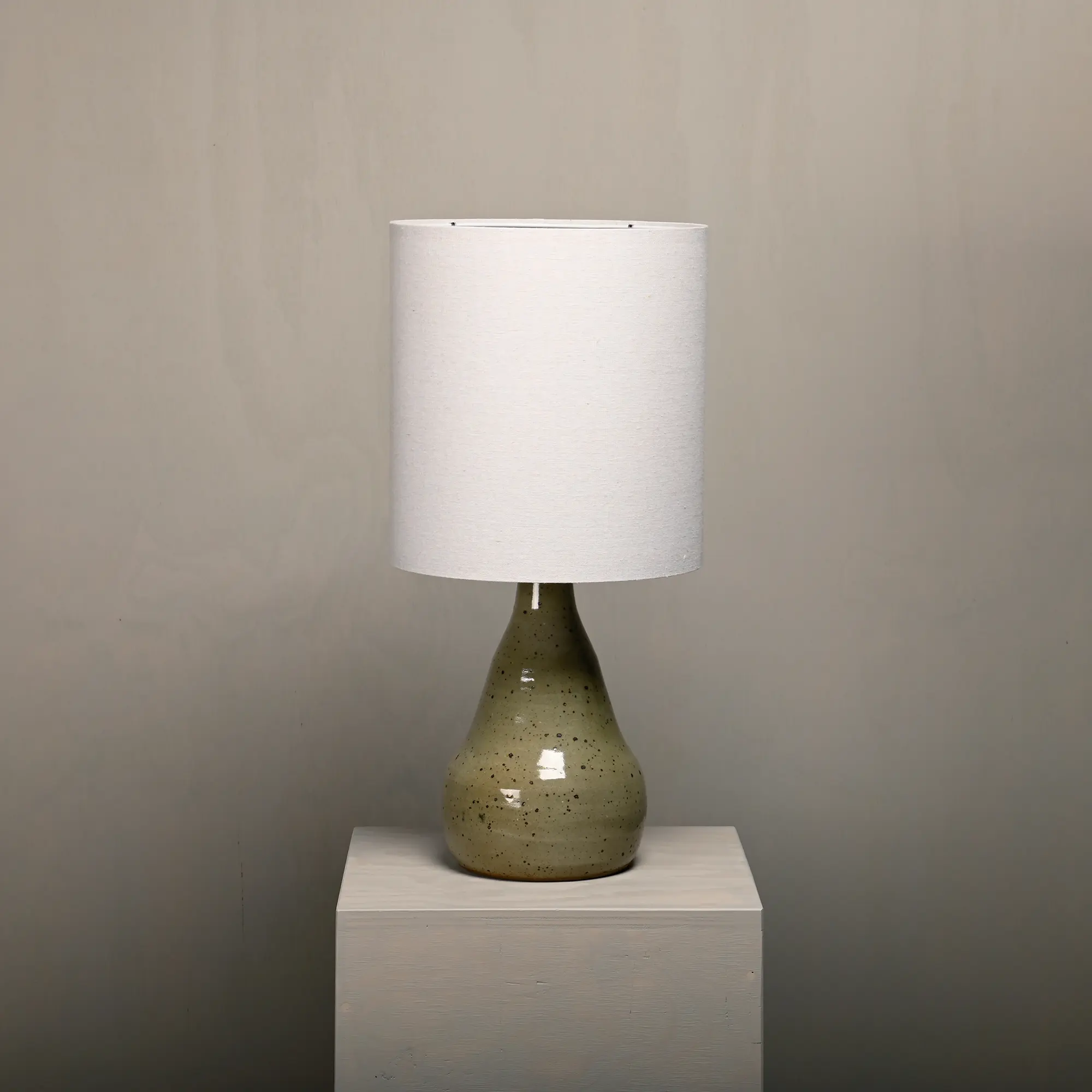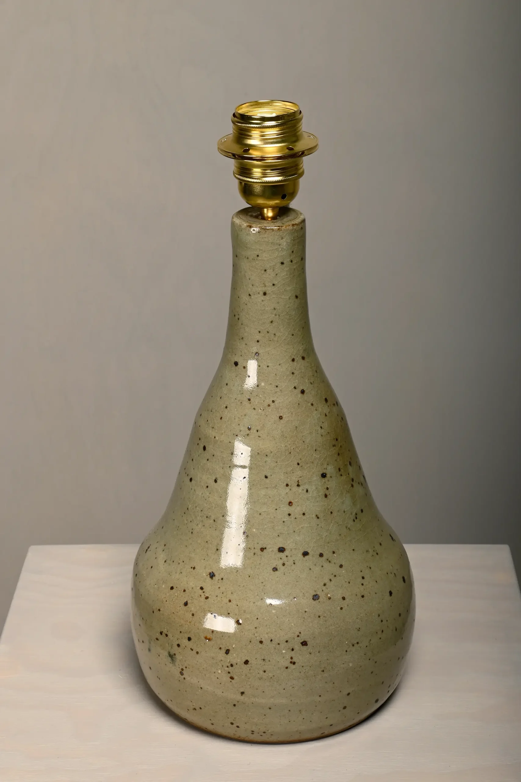 Large ceramic table lamp, France, 1960s. The lamp base is handmade from fired and glazed clay and is in very good condition. The wiring has been renewed and fitted with a brass socket (E26/E27). Suitable for both EU and US plugs. Includes a new lampshade, made of a cotton/linen blend.